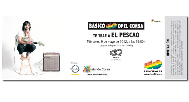 David Otero, el popular cantante venido de El Canto del Loco, seguirá la estela de Maldita Nerea y La Oreja de Van Gogh en la serie de Básicos 40 que celebramos cada poquito tiempo en 40 CAFÉ. Son los conciertos por excelencia de 40 Principales, con un formato único y los fans muy cerca de sus ídolos. Las invitaciones se agotaron en apenas dos días.¡, así que si tienes la tuya, enhorabuena, y si no, estate atento a los40.com y a 40cafe.es porque te colgaremos material exclusivo del conciertazo que se va a currar El Pescao. Fecha, 9 de mayo de 2012, hora, las 19:00 de la tarde.